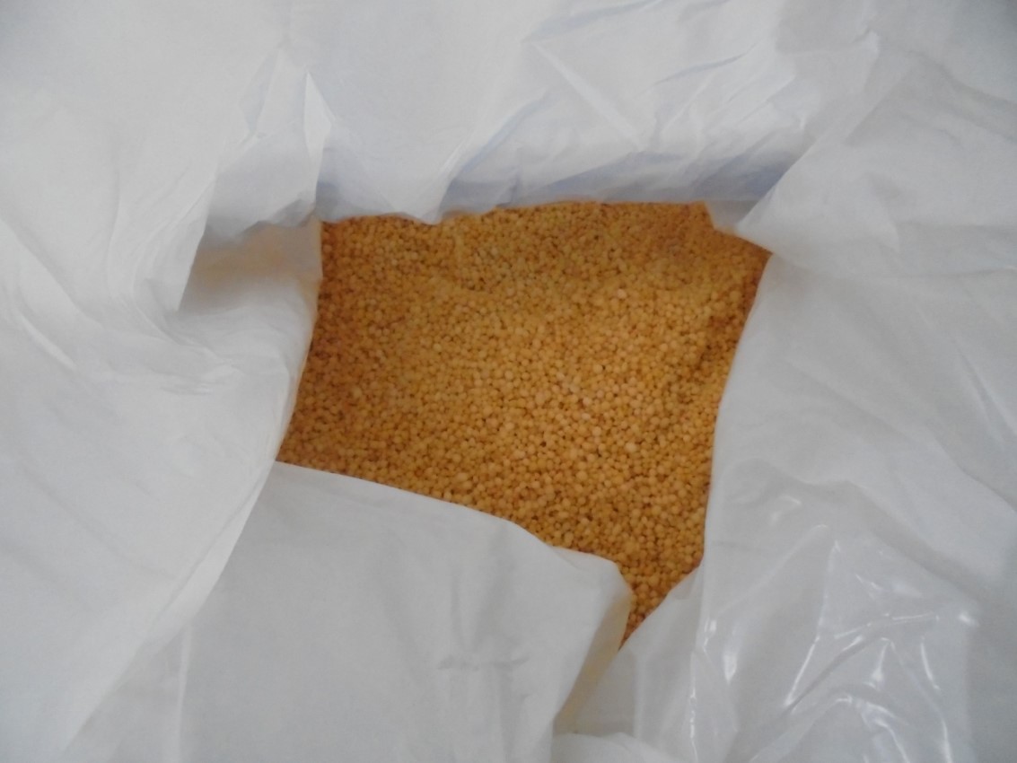 Trysky rozprašují protihrudkující látku nebo inhibitor v místě přesypávání hnojiva z dopravníku, aby byly granule pokryty rovnoměrně. Postup úprav je završen promícháním hnojiva v míchacím zařízení.