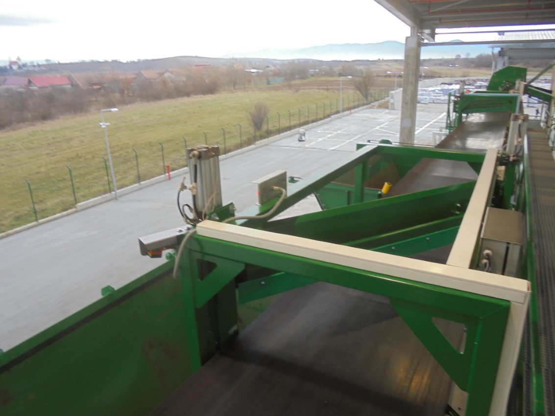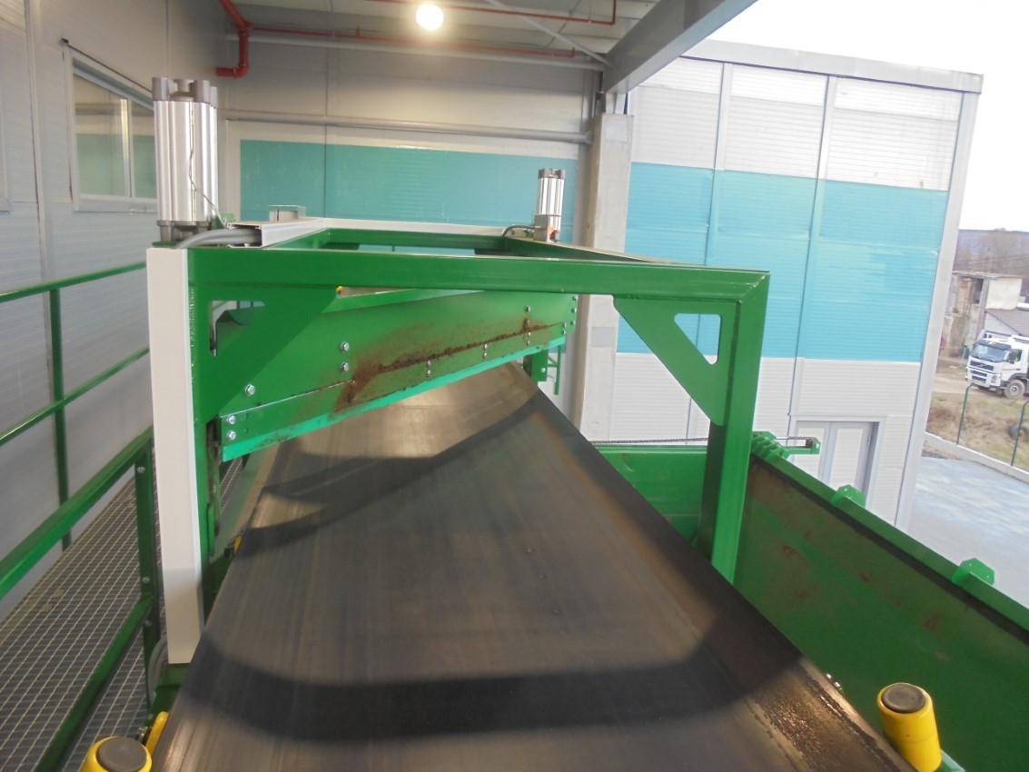 Linka míchání rašelinových substrátů končí naskladňovacím dopravníkem se shazovacími hradítky, která zajišťují sypání substrátu do velkoobjemových vstupních zásobníků balicí linky. Hradítko se umisťuje na vodorovnou část pásového dopravníku nad zásobník, do kterého se má surovina sypat. Ovládání hradítka je pneumatické a je řízeno automaticky z velínu. Hradítko může být jednostranné (shrnuje materiál z pásu na jednu stranu), nebo dvoustranné.