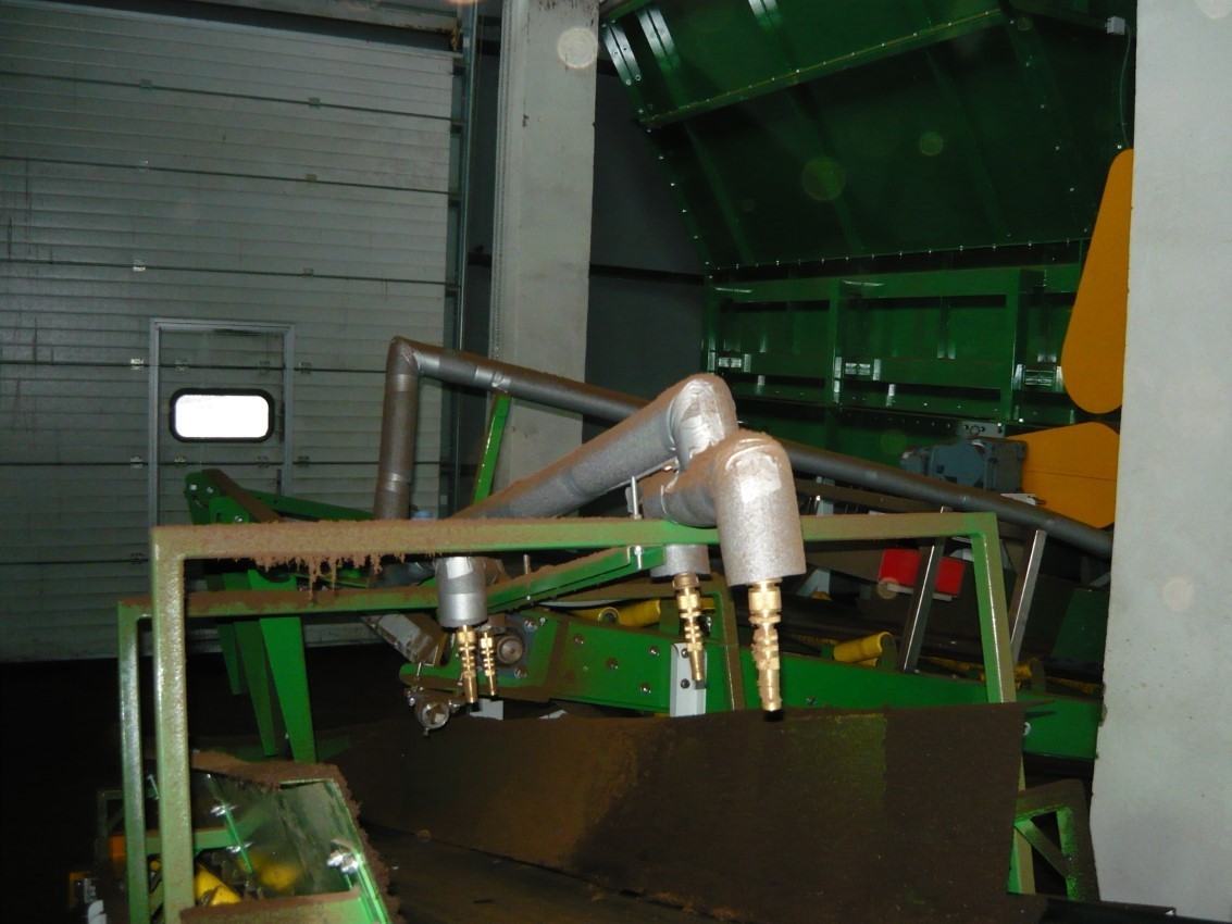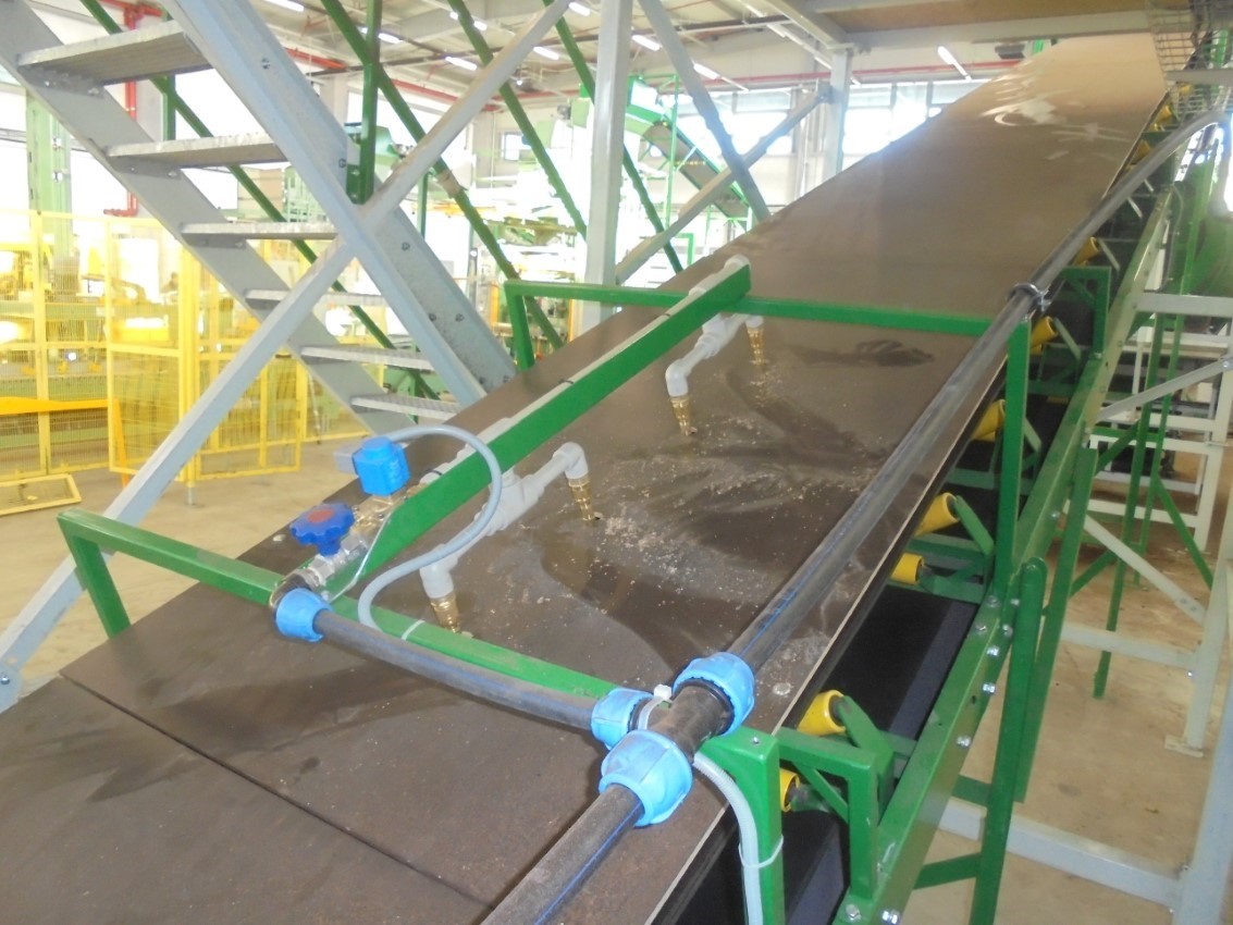 Nastřikování vody se používá pro snížení prašnosti a dosažení optimální vlhkosti míchaných substrátů. Rozprašovací trysky jsou napojeny na místní zdroj technologické vody. Dávka nastřikování je upravována a kontrolována pomocí průtokoměru a dávku určuje receptura. Nastřikování probíhá v automatickém režimu. Voda je vedena potrubím ke speciálním tryskám a ty vytváří jemnou mlhovinu pro snazší nanesení kapaliny na substrát.