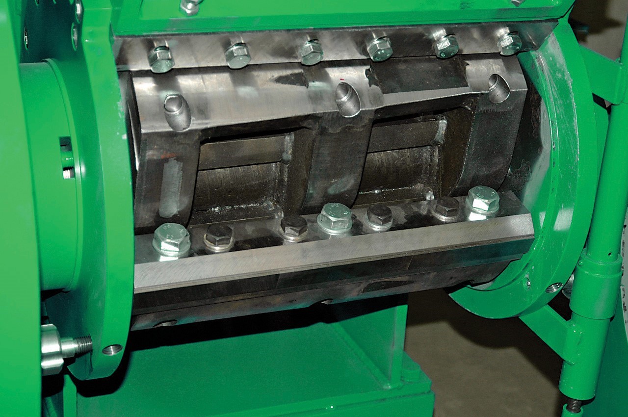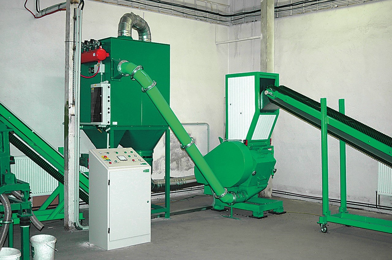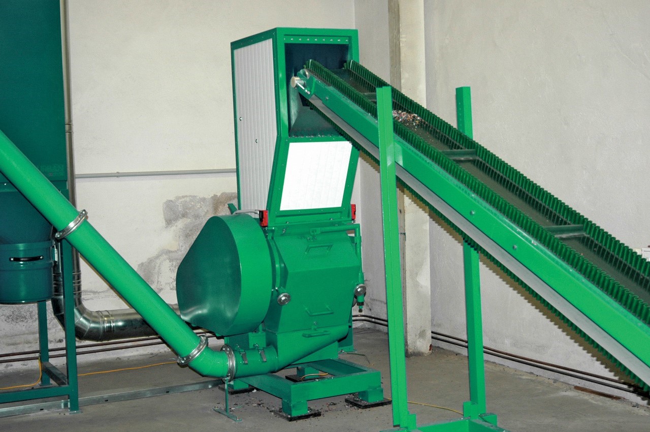 Высокоскоростные ножевые мельницы используются для измельчения целых или, возможно, ранее грубо измельченных отходов, пластикового лома с производства, а также электроотходов, кабелей, ПЭТ-бутылок и т. д. Благодаря прочной конструкции ножевые мельницы могут использоваться отдельно или на линии. Мельница оснащена ротором с четырьмя роторными и двумя статорными ножами, которые размещены в массивной сварной коробке. Высококачественная геометрия ножей обеспечивает высокую производительность, низкий износ и низкий уровень шума. Калибрование выходного материала обеспечивает сменное сито. Сито и внутренняя часть коробки изготовлены из износостойкого материала HARDOX для уменьшения износа. Подшипники и сальники защищены лабиринтом с винтовым выводом фрагментов обратно в камеру дробления. Такая конструкция предотвращает их засорение или повреждение. Мельница приводится в движение электродвигателем со шкивом и клиновыми ремнями. Загрузочная воронка мельницы представляет собой сэндвич-концепцию и является откидной.