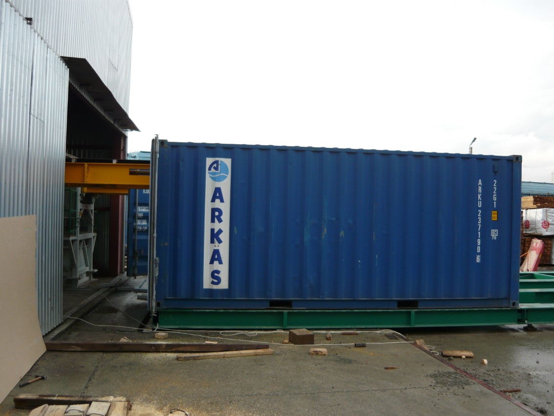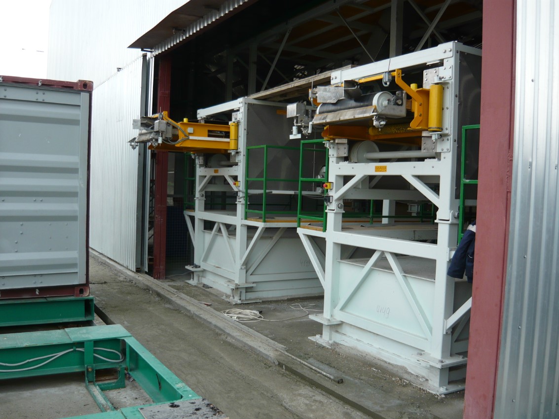 Пустой контейнер будет подан с открытой передней/фронтальной частью к загрузочному оборудованию. Сначала на экране панели управления будет выбран материал, который будет загружаться, и размер контейнера. Потом загрузочный элемент – конвейер – вставлен в самую заднюю часть контейнера и включен автоматический процесс загрузки. После этого всем управляет автоматика, т.е. будет запущен загрузочный элемент и начата подача материала. Контейнер заполняется с задней стороны, при этом наполнитель постоянно движется из контейнера в направлении наружу, вплоть до заполнения целиком.