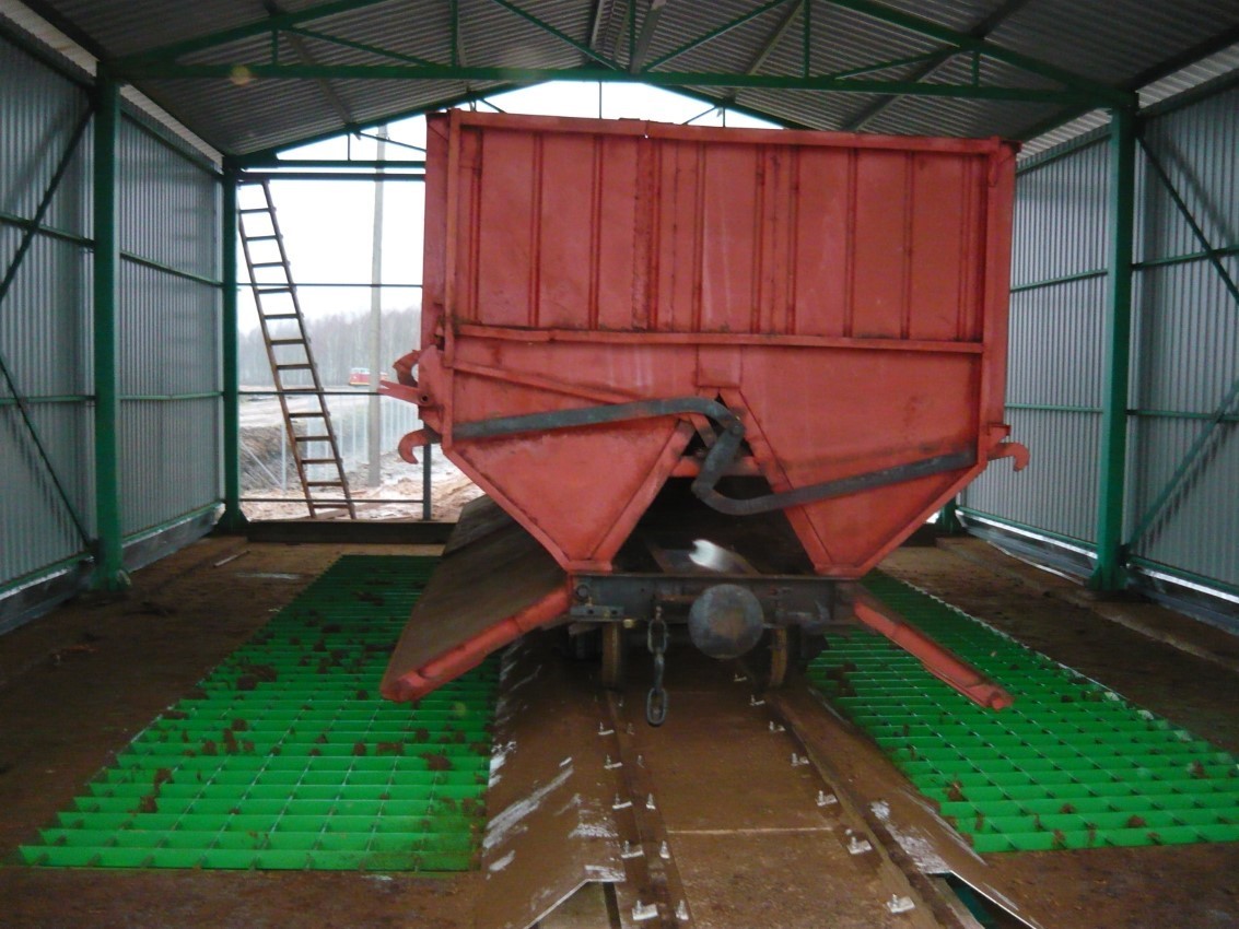 Длина бункера позволяет за один раз опорожнить всё содержимое вагона с торфом.