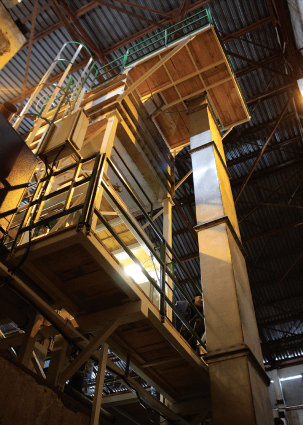 Korčekový pásový elevátor slúži k vertikálnej preprave sypkých materiálov.