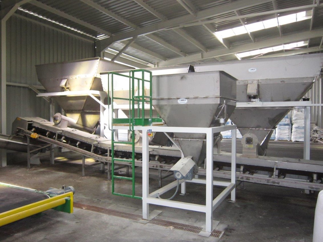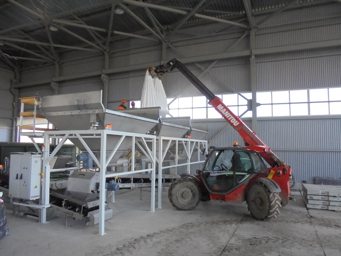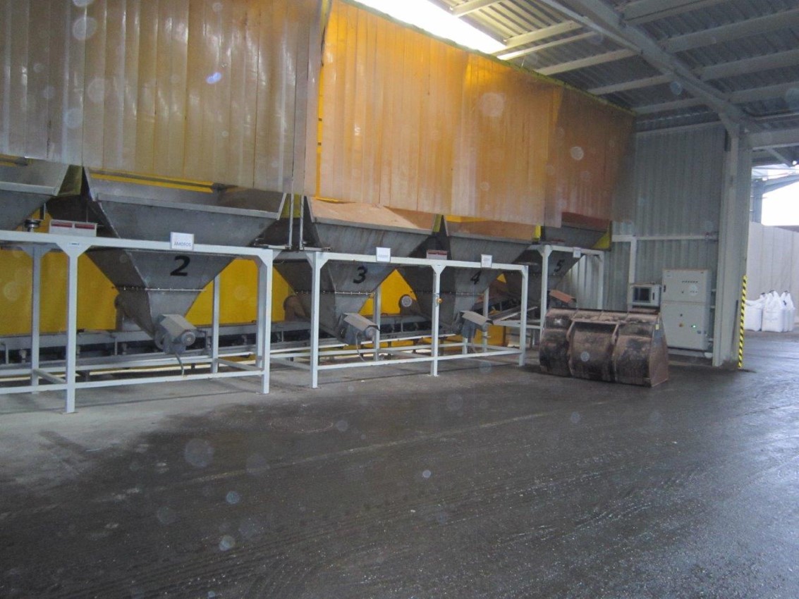 Násypky so šnekovými podávačmi sú vyrobené z nerezovej ocele. Násypky sú inštalované na tenzometroch na nosnom ráme. Rám je ošetrený chemicky odolnými nátermi. Násypka je vybavená nerezovými sitami s okami 50 х 50 mm, ktoré plnia ochrannú funkciu. Násypky sa plnia čelným nakladačom bez nutnosti prerušenia výrobného procesu a bez straty presnosti dávkovania.